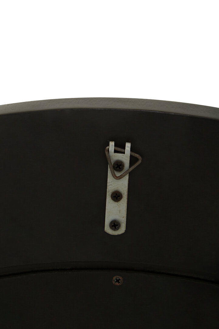 The mother of pearl frame on this round wall mirror is a stunning example of natural beauty and intricate craftsmanship. It's composed of numerous small mother of pearl tiles, meticulously arranged in a mosaic pattern. The mosaic pattern adds visual depth and complexity, showcasing the natural variations and unique character of the mother of pearl.